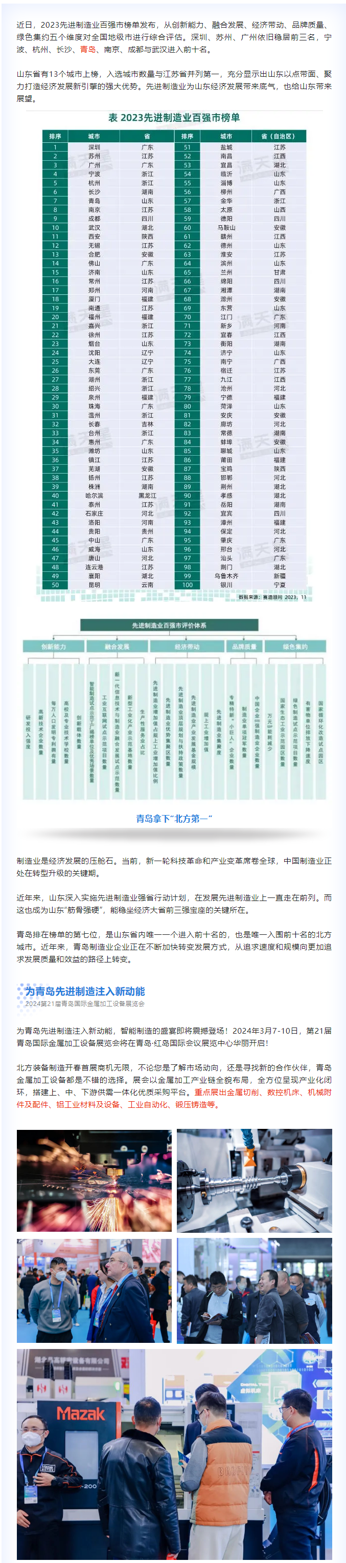 2023先進制造業百強市發布,煙臺位列第23位